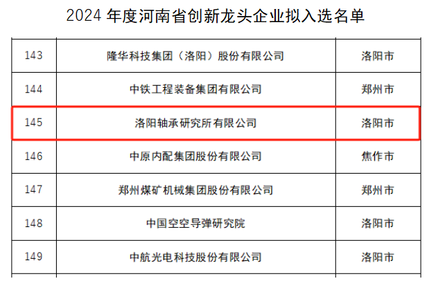 轴研所始终坚持创新驱动引领高质量发展,再次入选河南省创新龙头企业,是对轴研所科技创新、产品自主研发、行业综合实力的充分肯定。下一步,轴研所将进一步提升技术创新能力和水平,持续加强科研投入,为我国轴承行业科技创新和高质量发展作出更大的贡献。